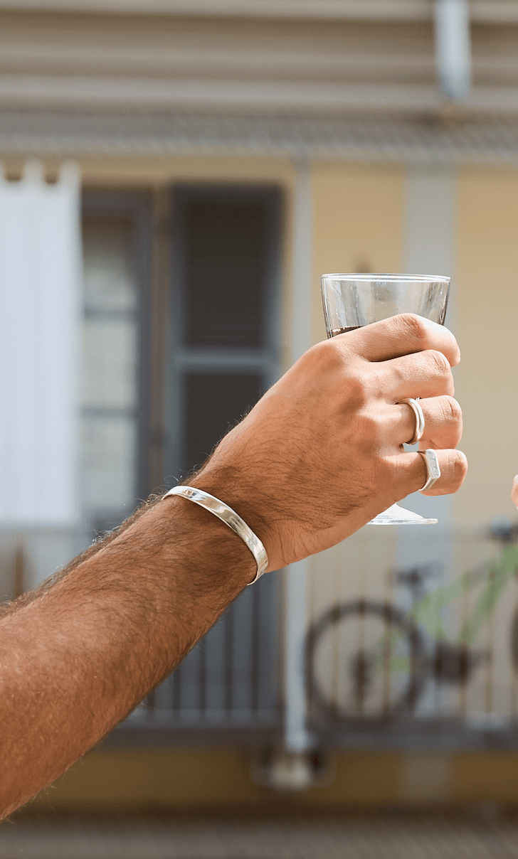 L'idea di celebrare la convivialità di un buon pasto condiviso con persone speciali prende la forma di un bracciale rigido e leggero inciso a mano su entrambi i versi con forchetta e coltello e, internamente, il nome della collezione.