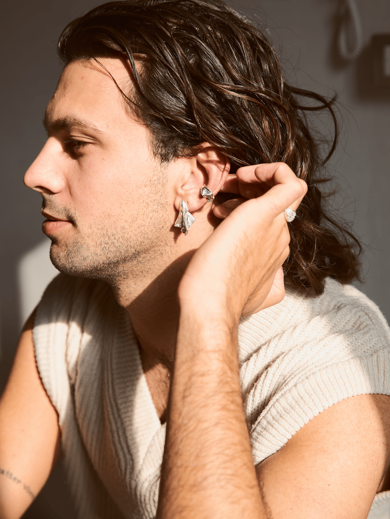 Un drappo leggero in argento ad avvolgere il tuo orecchio e a elevare svoltare un outfit.